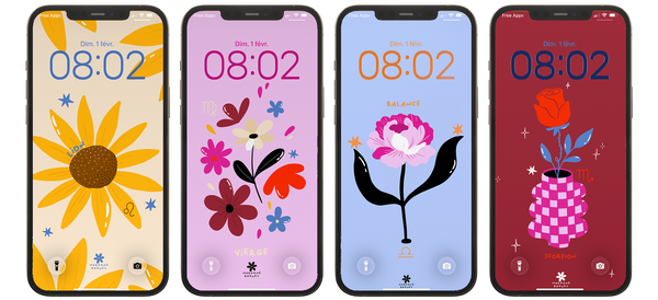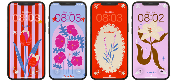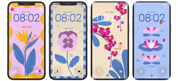 Ce mois-ci on explore le thème astro, autour des fleurs! Un fond d'écran pour chaque signe!
